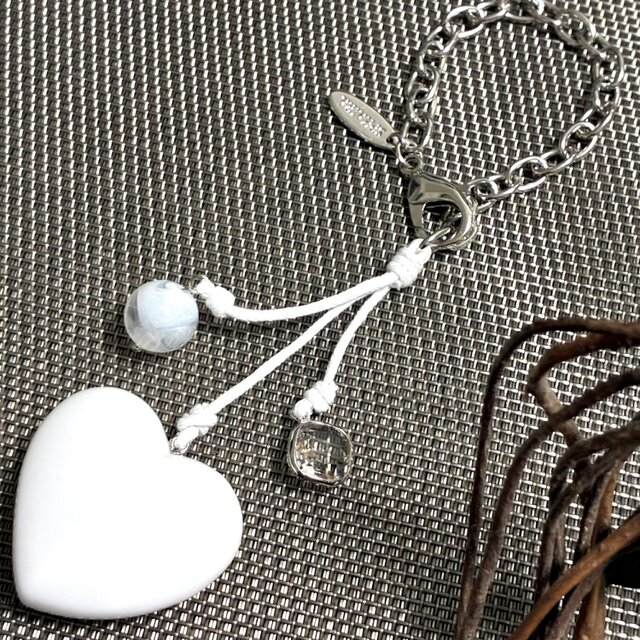 ミニマル ハートガラス チェーンバッグチャーム ホワイト