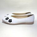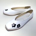 フラワーフラット 白パンプス ホワイトシューズ