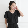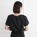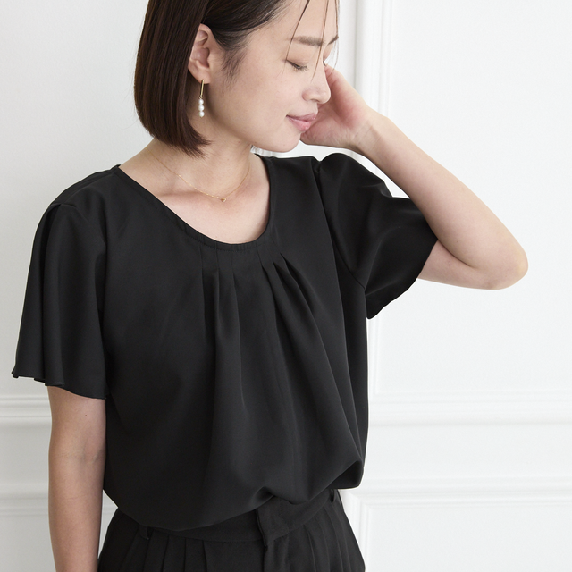 上品な光沢感+シワになりにくい フリルショートスリーブ ブラウス ブラック 0653BK