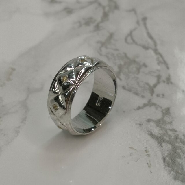 キルティングのような模様の手作りリング、キャスト品ではなくヤスリで削り出した一点ものです。