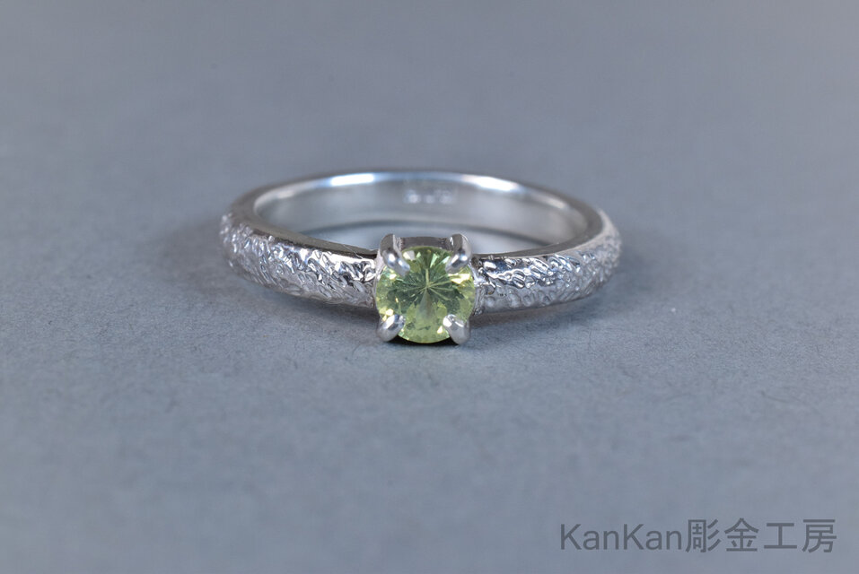 黄緑色のクリソベリルを用いたリングです。