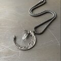 個性的なムーンフェイスのチャームが魅力的なUSAヴィンテージネックレス。チャームの内側には小さなクオーツが揺らめきます。マットなシルバーの質感もヴィンテージ感がありお洒落な雰囲気。古着やユニセックスなスタイルにもおすすめです。