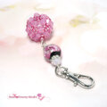 ホタル玉と大きな花編みビーズボールがかわいいキーホルダーです。