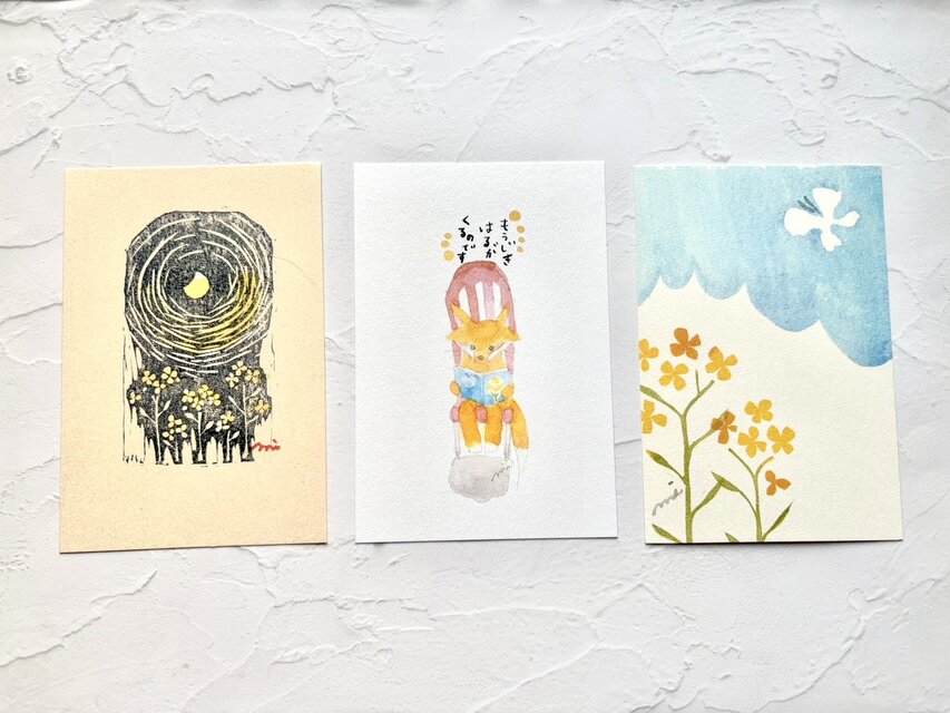 春の菜の花のポストカードを3枚集めました