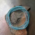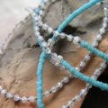 水色のインドシードビーズとホワイト~グレー系のジルコン、グーズベリーを合わせました。