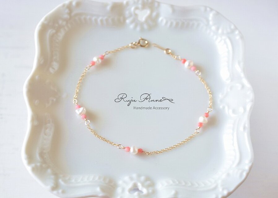 14kgf*サンゴと淡水パールのフェミニンブレスレット