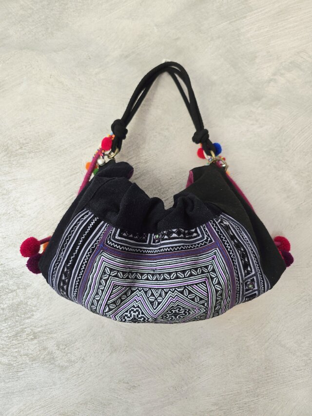 ヴィンテージ 民族刺繍 藍染ハンドバッグ ★ モン族