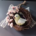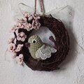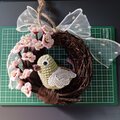 レース編みの梅とうぐいすのあみぐるみのリースです。