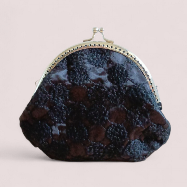 刺繍生地を使用した、がま口のポーチです。