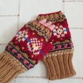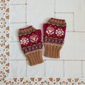 刺繍のリボンが並んだような多配色ミトン・指出しタイプです。