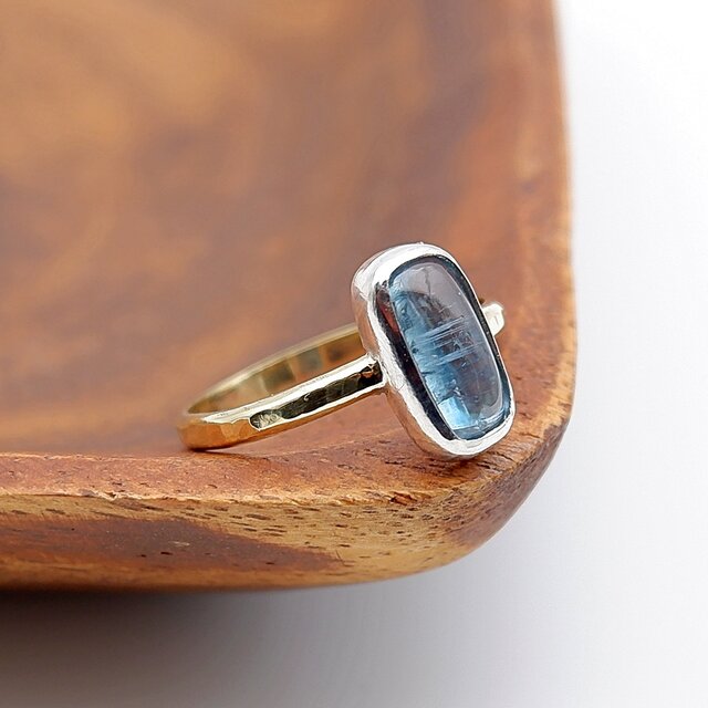 シーグリーンカイヤナイトのリング 11.5号 ~真鍮と銀の指輪~ 天然石アクセサリー 一点物