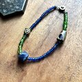チェーンで合わせたビーズはジャワの現行品の渋い藍。うっすら光を通します。