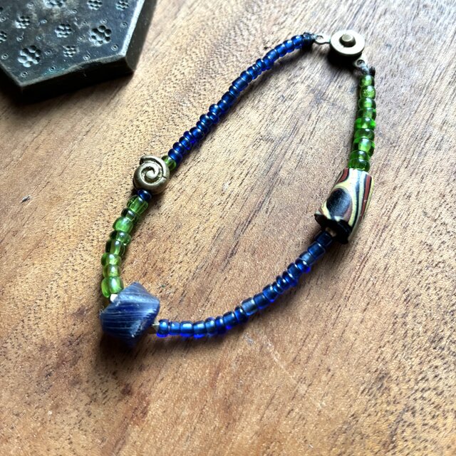 *Asiaのブレス。@アジアの出土ビーズ+ジャワのシードビーズ+ナガ族渡シードビーズ+インドのモチーフビーズ+ベネチアのとんぼ玉