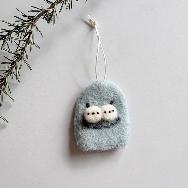 生地は、約2倍の大きさにメりノ毛糸を編んで縮絨させて(フェルト化)して仕上げました。