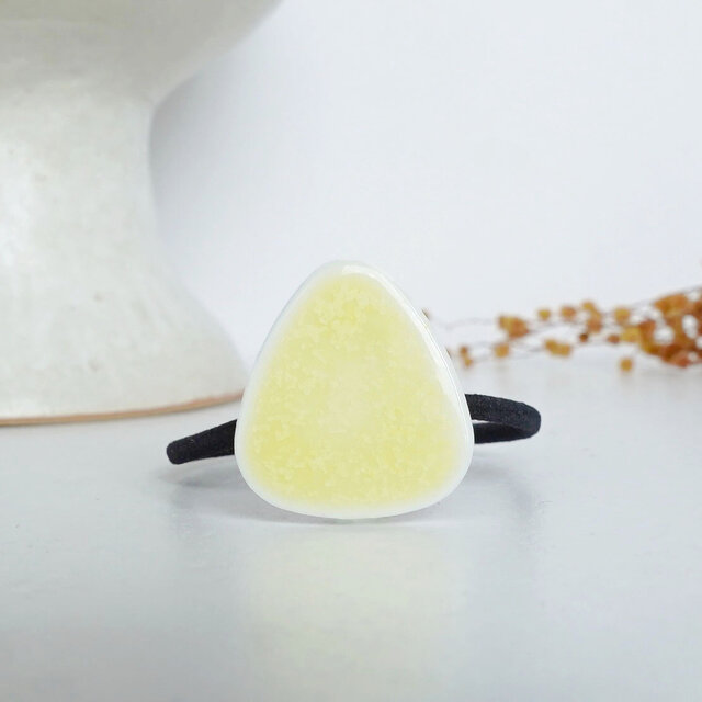 TH-103|美濃焼ヴィンテージタイルのヘアゴム《ミモザカラー|裏面レザー仕上げ》
