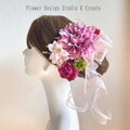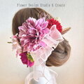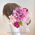 ピンクのダリアとオーキッドの着物髪飾り 成人式 和装 卒業袴 和装婚 色打掛 結婚式 髪飾り 造花 花