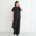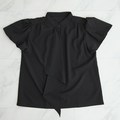 式典〜普段着も◎ 結ばず決まる 洗えるボウタイブラウス ショートスリーブ シワになりにくい ブラック 0567BK