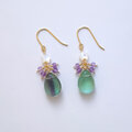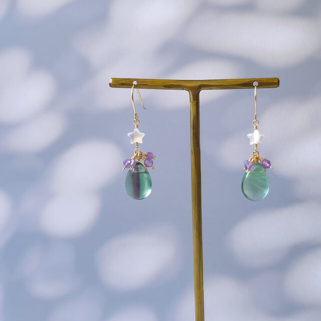 つるんとしたドロップ型のフローライトはうっすらと縞模様が見え、左右違う表情のフローライトが楽しめます。