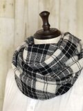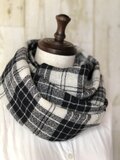 メチャ軽❣️ピュアウールガーゼ二重巻きスヌード❤️クラシカルタータンチェック(ブラック×アイボリーホワイト)