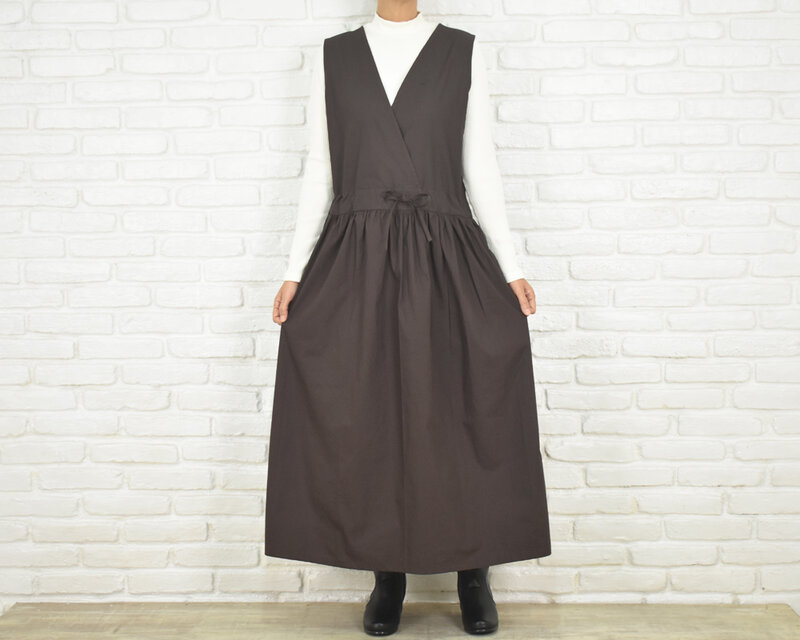 コットン素材のカシュクールワンピース ダークブラウン