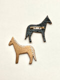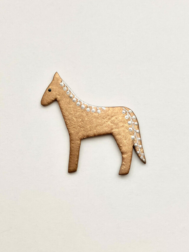 たてがみとしっぽの模様は木の実のイメージで、アルミ粉で描きました。