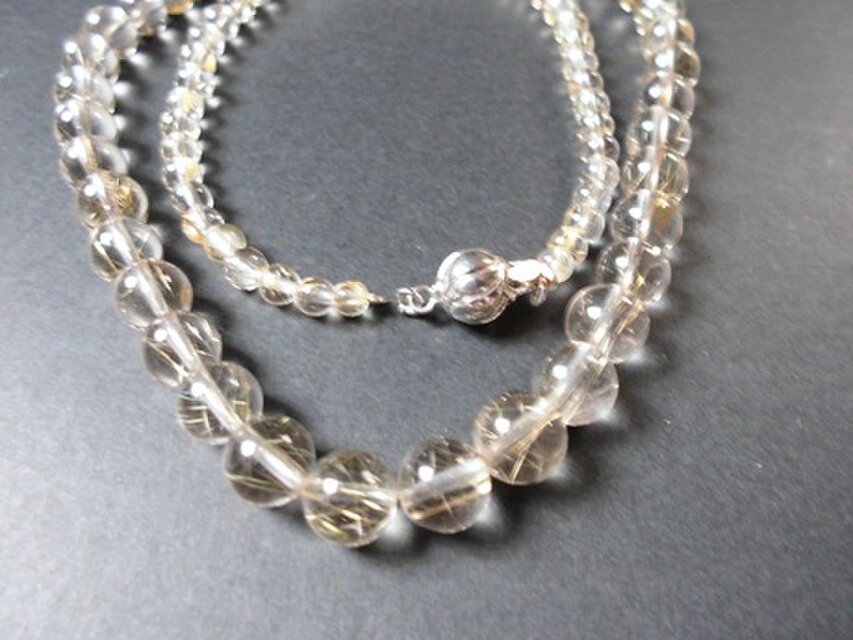 10ミリから3ミリの珠をグラデーションを付け繋いだ品です。