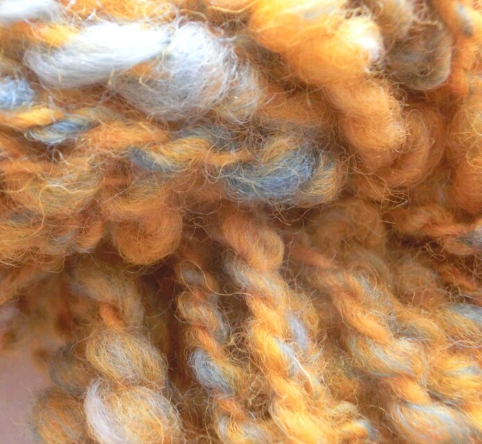 黄色とブルーを混ぜ合わせより合わせた手つむぎ糸です