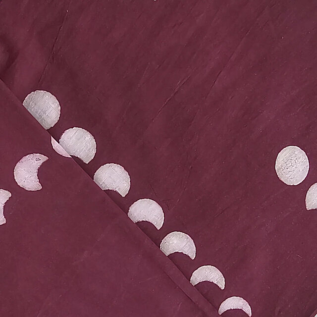 インド ブロックプリント生地 [50cm単位切売] ダブー ムーン 月の満ち欠け ワインレッド SAIF0458