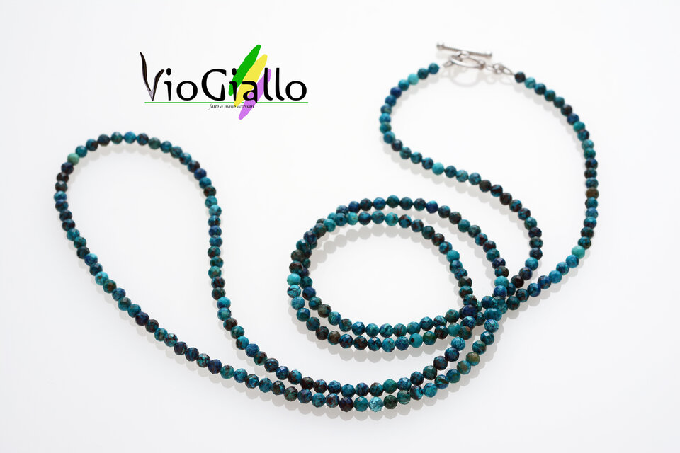 魅力的なクリソコラの4ミリのラウンドカットをロングネックレスに仕上げました。