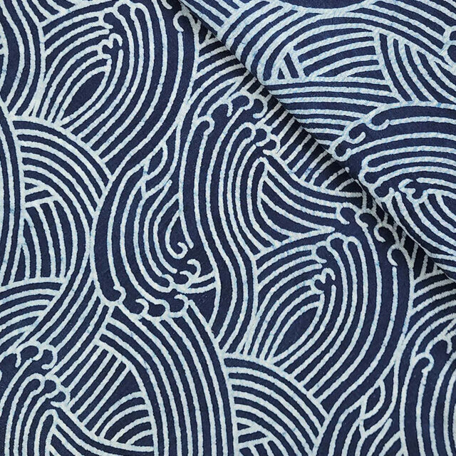 インド ブロックプリント生地 [50cm単位切売] Jaalウェーブ インディゴブルー 波 渦 海 SA IF0456