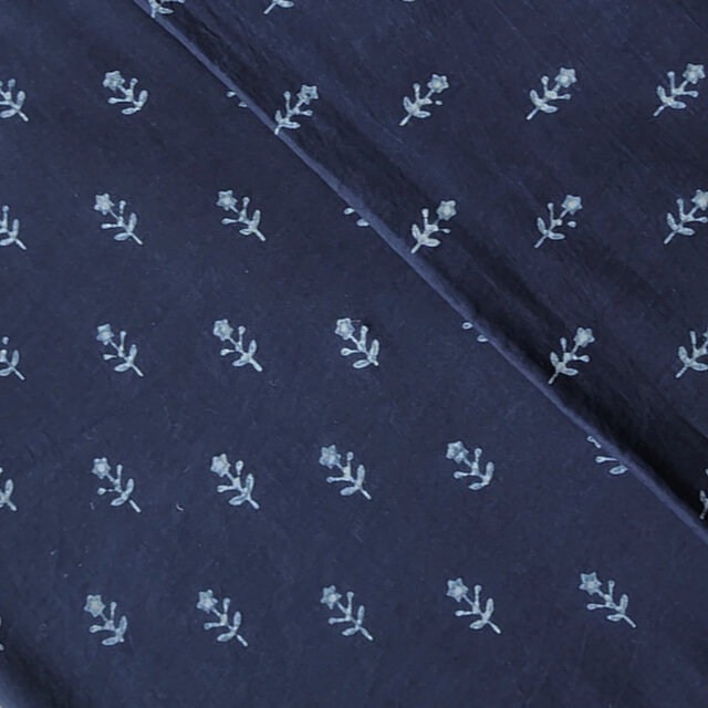 インド ブロックプリント生地[50cm単位]アコラ インディゴ ブルー ミニフラワー 縞柄 SA IF0461