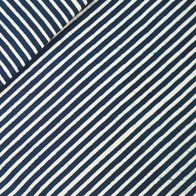 インド ブロックプリント生地[50cm単位] インディゴ ブルーストライプ 縞柄 青 藍染 SA IF0460