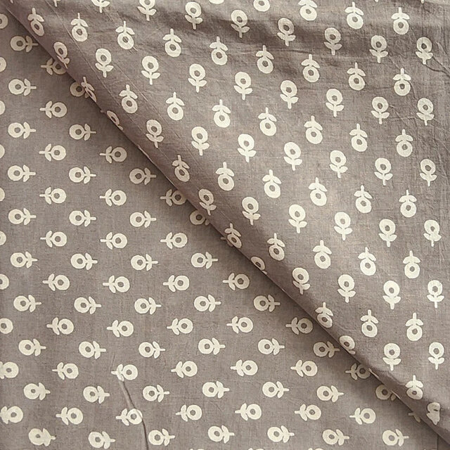 インド ブロックプリント生地 [50cm単位切売] ダブー ホワイトフラワーonブラウン SA 花 IF0462