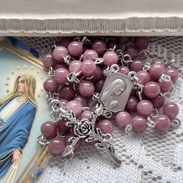 お品受取りしました。2つ共に良い出来上りで、丁寧に包んで下さり有難うございました。 このような大きな玉とメダイで大変だったのではないかと申し訳なく思います。