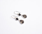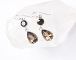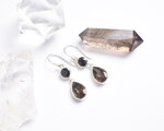 漆黒の輝きを放つブラックスピネルと、透き通る落ち着いたブラウンカラーのスモーキークォーツを組み合わせたシルバーピアスです。