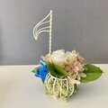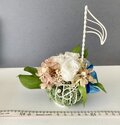 プリザーブドのバラの花を 白いワイヤーの音符のカゴにアレンジしました。
