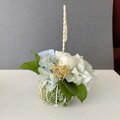 ルスカス ブルーの紫陽花とグリーンのかすみそうを合わせ