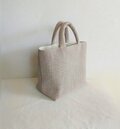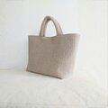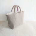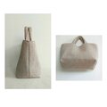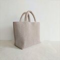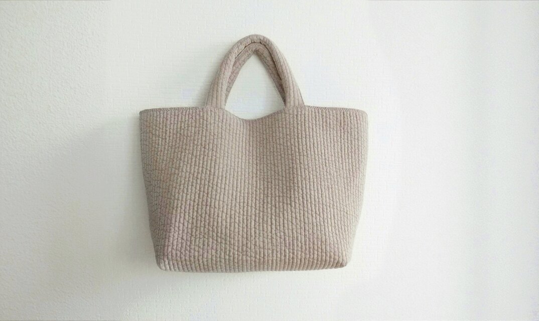 グレージュの韓国の7mm幅のヌビ生地(ラインキルティング)の軽くて使いやすいシンプルなA4サイズも入るマチ広の手持ちタイプのトートバッグです。