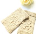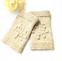 【送料無料】チクチクしないシルクウール 手編みハンドウォーマー ベージュ 指なし ミトン アームウォーマー