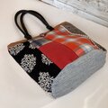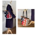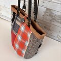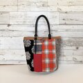 ウール バケツ型トートバッグ 赤のチェックと丸い刺繍