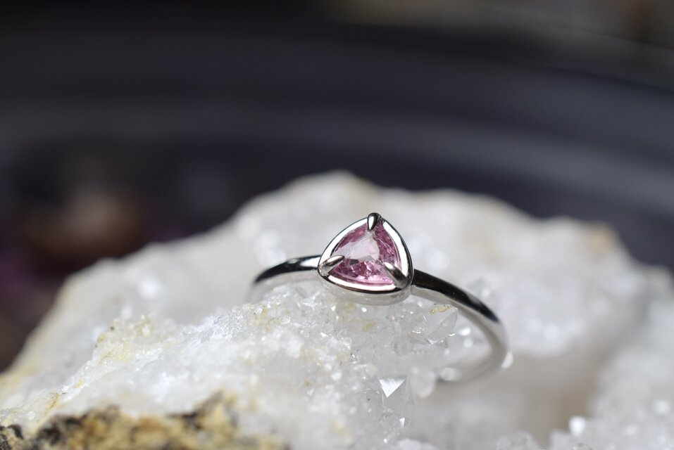やわらかな槿花(むくげ)色が印象的なスピネルを、