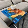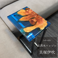 美しい木目を持つ木材と洗練された輝きを放つレジンで織りなすウッドレジンのサイドテーブルです。小さな工房で丁寧に仕上げた一点物です。