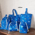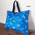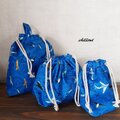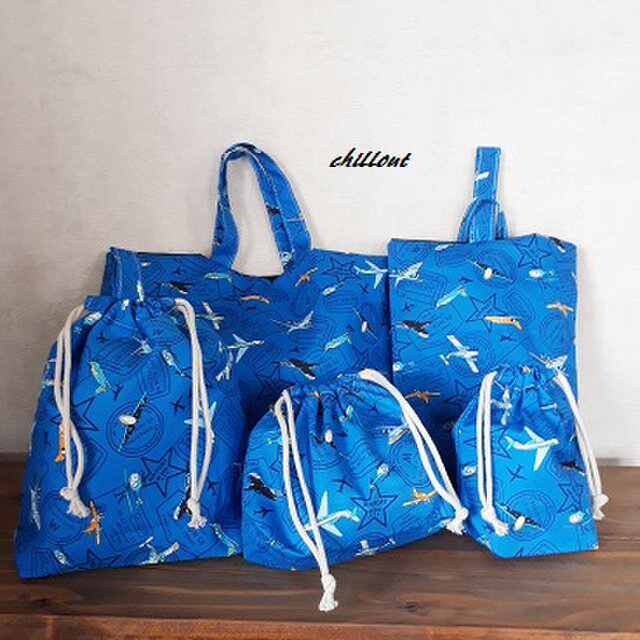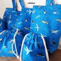 飛行機柄の入園バッグ5点セットが出来上がりました!