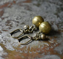 満月まん丸メタルパーツとチェーン、民族鈴を繋いだピアスです。