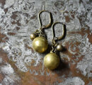満月まん丸メタルパーツとチェーン、民族鈴のピアス