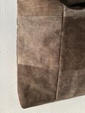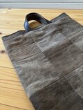 一本の帯芯を柿渋で染め、敢えてその染めムラと織り目を市松模様で生かしてトコトン使い切りました。