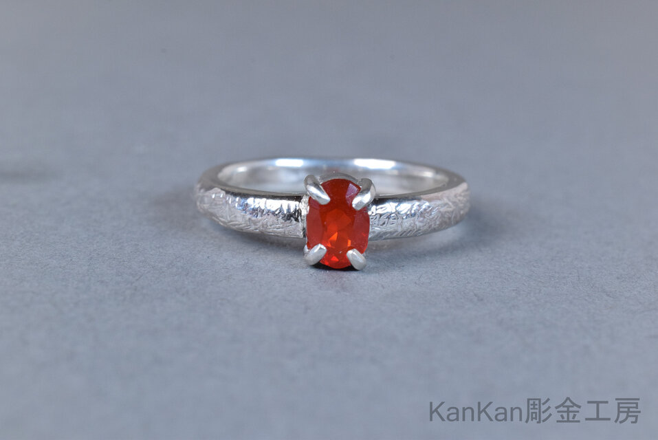 炎を思わせる朱色を呈したファイアーオパールのリングです。