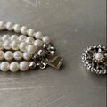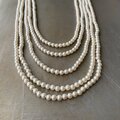 クラシカルな雰囲気のロングパールが魅力的なヴィンテージネックレス。レトロなデザインの金具も魅力的。ボリューム感のある5連タイプでスタイリングに華やかな雰囲気をプラスしてくれます。