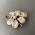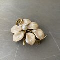 Vintage 80s-90s retro botanical flower enamel pearl brooch
