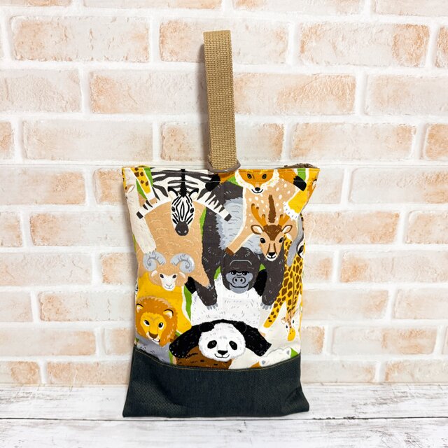シューズ袋 スリッパ袋 巾着 Dカン ナイロン 持ち手 巾着袋 ポケット付き 子供用 動物柄